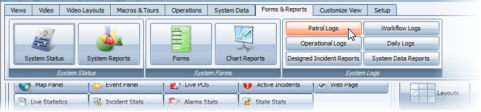To view the Patrol Logs tab, click the Patrol Logs button in the System Logs group on the Forms & Reports menu.