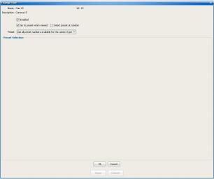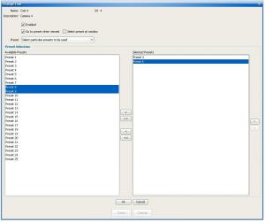 The Preset Selection pane display depends on the selection from the Preset drop down list. It is empty as in the picture above when Use all preset numbers for the camera type is selected.
