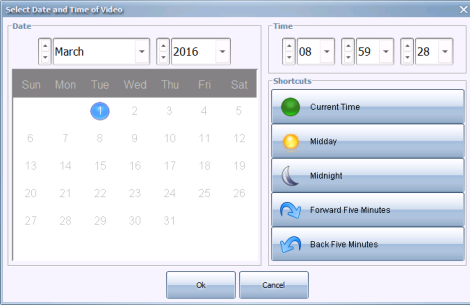 Specify the date and start time of the clip you want in the Time Selection group on the Video menu.