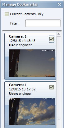 The selected camera(s)' footage in between and including the bookmark is added to the Clip Basket.