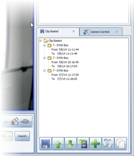 The Clip Basket, located in the lower right panel in the Secondary Window, is a temporary repository in Synergy for your video clips. You can add multiple clips from different cameras to the Clip Basket and attach them to new or existing incidents. The following is a screenshot of the Clip Basket.