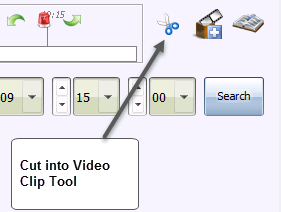 Likewise, to save a clip of live video, click the Cut into Video Clip tool. Once you have dragged the cursor left or right to delimit the required segment, click the Add to Clip Basket tool.