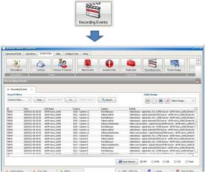 The Recording Events option shows events sent to Synergy by the recording software on the PSNs (R.M.S. and Watchdog). It is found in the Event Data group on the System Data man tab.