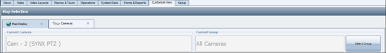 The Camera button indicates the number and name of the currently selected camera (the video from this camera is now playing in the Video Window).
