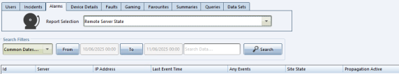 This report allows you to monitor the status of remote servers. Previously propagation was queried using a macro but as of 25.2.100 there is a new feature to allow this to be queried and the status of this is shown in the Propagation Active field.