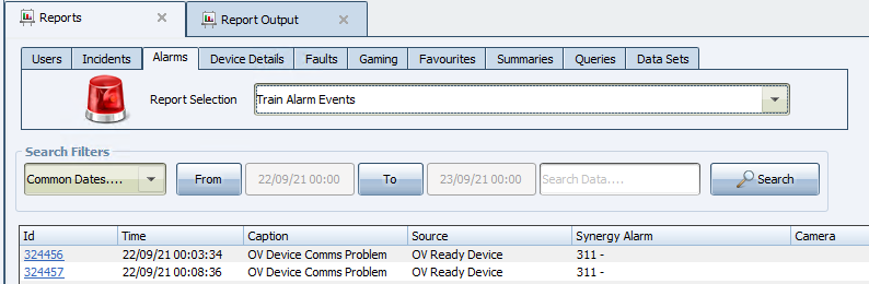 This report is used to show all alarm events coming from a train.