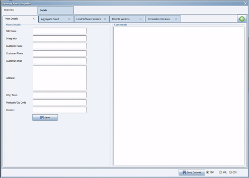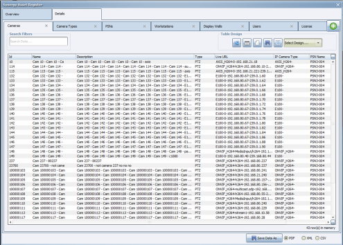 The Asset Register provides an overview of all Synectics hardware and software installed on a site, including which version of each. This provides key information on the architecture of the Synergy system. Among other aspects, the tool states the number of users and licenses added, the number of cameras and PSN units configured, and details of any third-party integrations configured in the system.