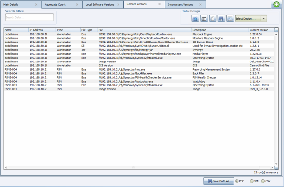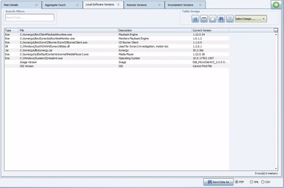 - Local Software Versions - Software versions on the local Synergy system (installed on the local machine on which the Asset Register is being run)