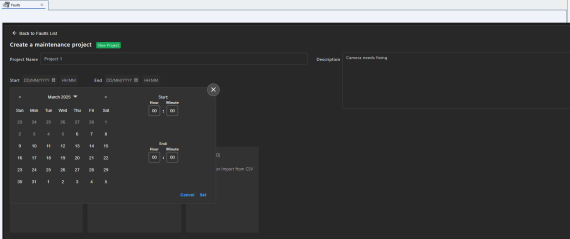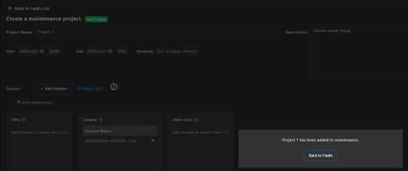 Click Schedule Maintenance to now create the project. Once created, you can return to the faults list.