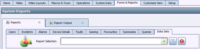 Click the Data Sets tab on the Reports tab of the System Reports screen.