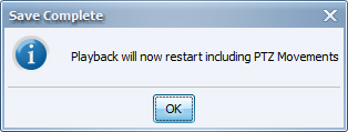 Note: PTZ movement recording is sequential only; if you attempt to record additional PTZ movements on an earlier timestamp, previous recordings will be deleted.