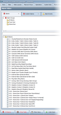 To select an alarm, click its button on the tab. If there is a camera associated with the alarm, its current video will play in the Video Window. If the alarm has a map icon, it will highligh, allowing you to identify the alarm position.