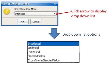 Click the arrow to display the drop down list and select the desired interlace mode.