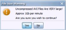 If you are exporting to AVI format and you select to export uncompressed files, you will be warned that the file size is large and will take time to export.