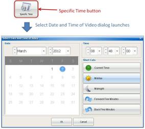 To select a video for any day and time click the Specific Time button to launch the Select Date and Time of Video dialog.