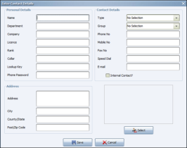 Note: The License, Rank, and Collar fields can be used for military and police contacts.