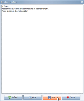 If you want to edit your note, click the Handover Notes button again. The Handover Notes dialog will appear with your last note. Make edits as needed, and click Save.