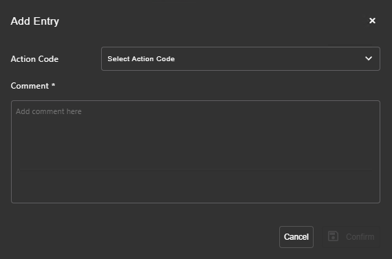 Here you can select an action code from the drop-down menu.