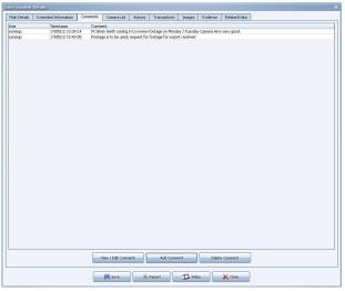 The Comments tab is used to view, edit and add comments for the incident.