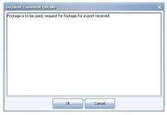 You can edit a comment by selecting it in the list and clicking View / Edit Comment. The Incident Comment Details dialog is displayed: