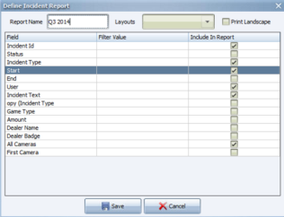 Click Save. The new report now appears on the Report Design drop-down menu in the Run Incident Report dialog.