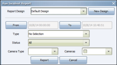 Click the Designed Incidents button in the System Logs group of the Forms & Reports menu. The Run Incident Report dialog appears.
