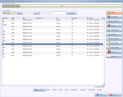 To copy an incident to a removable drive, select it from the list in the View Locker Contents dialog.
