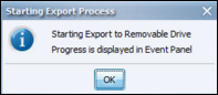 Make your drive selection from the Select Drive Name drop-down menu and click OK. The Starting Export Process dialog appears.