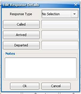In it select a Response Type from the drop down list. Clicking each of the Called, Arrived and Departed buttons brings up a Select Time dialog allowing you to add a time stamp for the action.