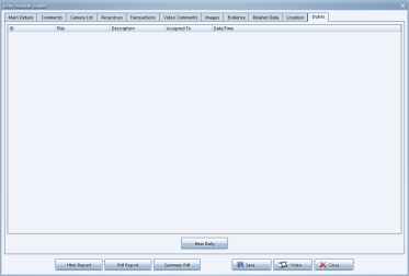 The Duties tab is a list of all duties (also known as diary tasks) that have been added directly to this incident.