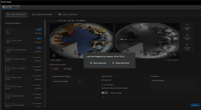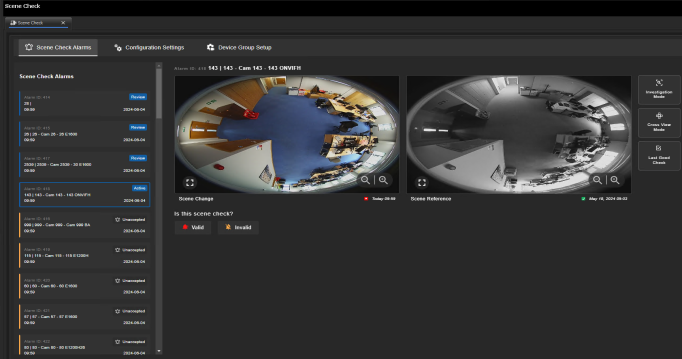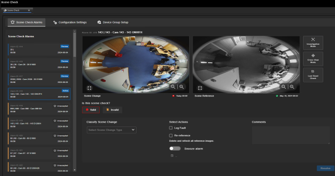 Scene check allows you to compare live image alarms against a reference image and take appropriate action, if required.