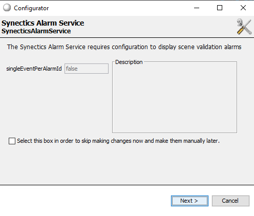 Click Next to configure the Synectics Alarm Service.