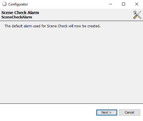 Click Next to create the scene check alarm.