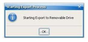 Select the drive and click OK. The Starting Export Process message is displayed: