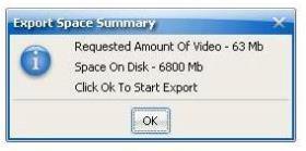 Click OK. The Export Space Summary dialog box is shown: