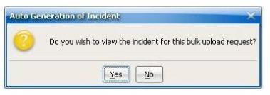 Click Yes to immediately view the incident for the bulk upload request. The Enter Incident Details