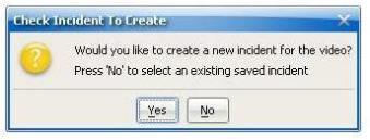 If you select No the Review Incidents dialog (described in section TBDR) is displayed and you can select the incident you want the footage added to.