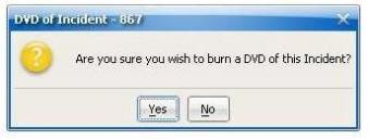 To burn a DVD of the incident footage press button. You will have to confirm that you wish to burn a DVD of the incident: