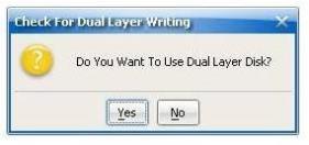 Select Yes to burn a dual layer disk and No to burn a single layer.