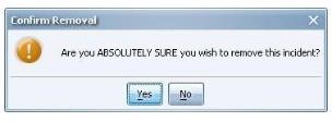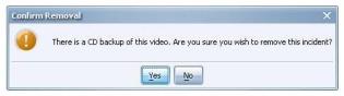 The Confirm Removal dialog is displayed indicating whether the incident has been backed up: