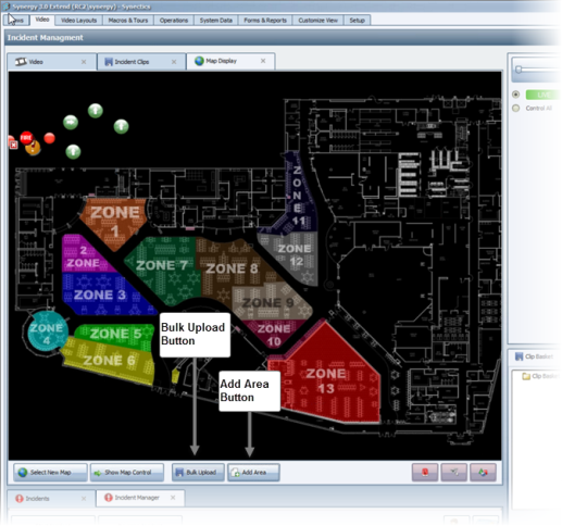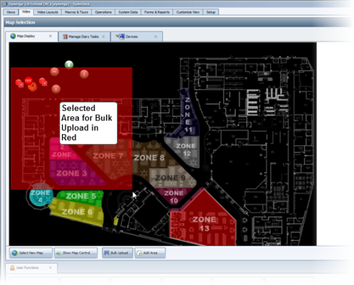 Once you have selected bulk upload from the Video view, the Bulk Upload and Add Area buttons will appear on the Map Display tab.