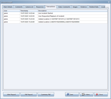 The Transactions tab is a record of all actions (transactions) taken by all system users regarding the incident from start to close. The following is a screenshot of the Transactions tab.