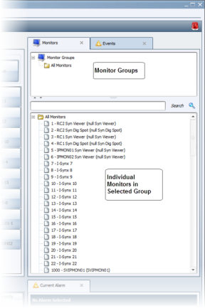 Select a folder from the Monitor Groups list in the upper panel of the tab. The name and number of the monitors in your selected group appear in the lower panel of the tab in a tree structure.