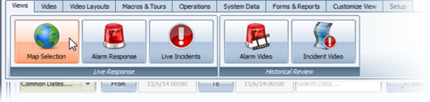 To access the maps that were set up in your Synergy system, click the Map Selection view button on the Views menu.