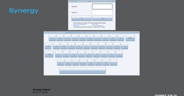 Note: Your Synergy software version number and build number is noted in the lower left area of the User Log In screen.
