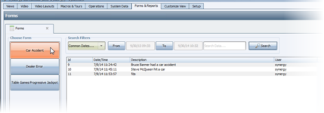 To find a completed form, select a form type from the Choose Form area on the left side of the tab. Use the Search Filters to narrow your search by date and/or data. A list of forms that match your search criteria appears on the table.
