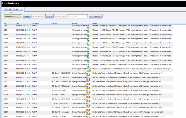 You can also filter by camera(s) within PSNs. This displays the number of occurrences of each event type per camera. There is a hyperlink available on the camera ID which when clicked will allow you to play back the video for a particular camera and time.