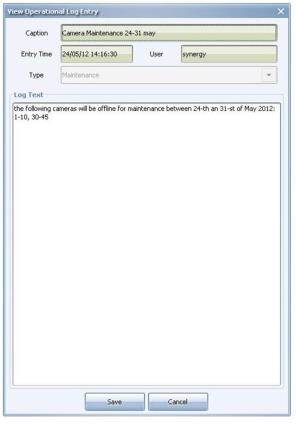 To view the details of a log entry, click it in the list. The View Operational Log Entry dialog is launched populated with all the details for the log entry: